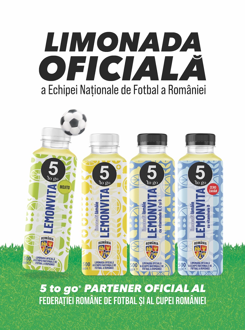 Semnarea acestui parteneriat de marcă este completată de asocierea unui produs 5 to go din sectorul de retail, parte din portofoliul de opțiuni echilibrate, dedicate celor cu un stil de viață sănătos – Lemonvita by 5 to go, care devine astfel limonada oficială a Echipei Naționale de Fotbal a României. Este vorba de cele trei SKU-uri deja existente – 5 to go Lemonvita Original, Lemonvita Zero Zahăr cu vitaminele B și Lemonvita Original cu vitaminele B, C și D -, la care se adaugă un al patrulea sortiment, vibrant și revigorant, Lemonvita Mojito, a cărui lansare marchează acest moment important.